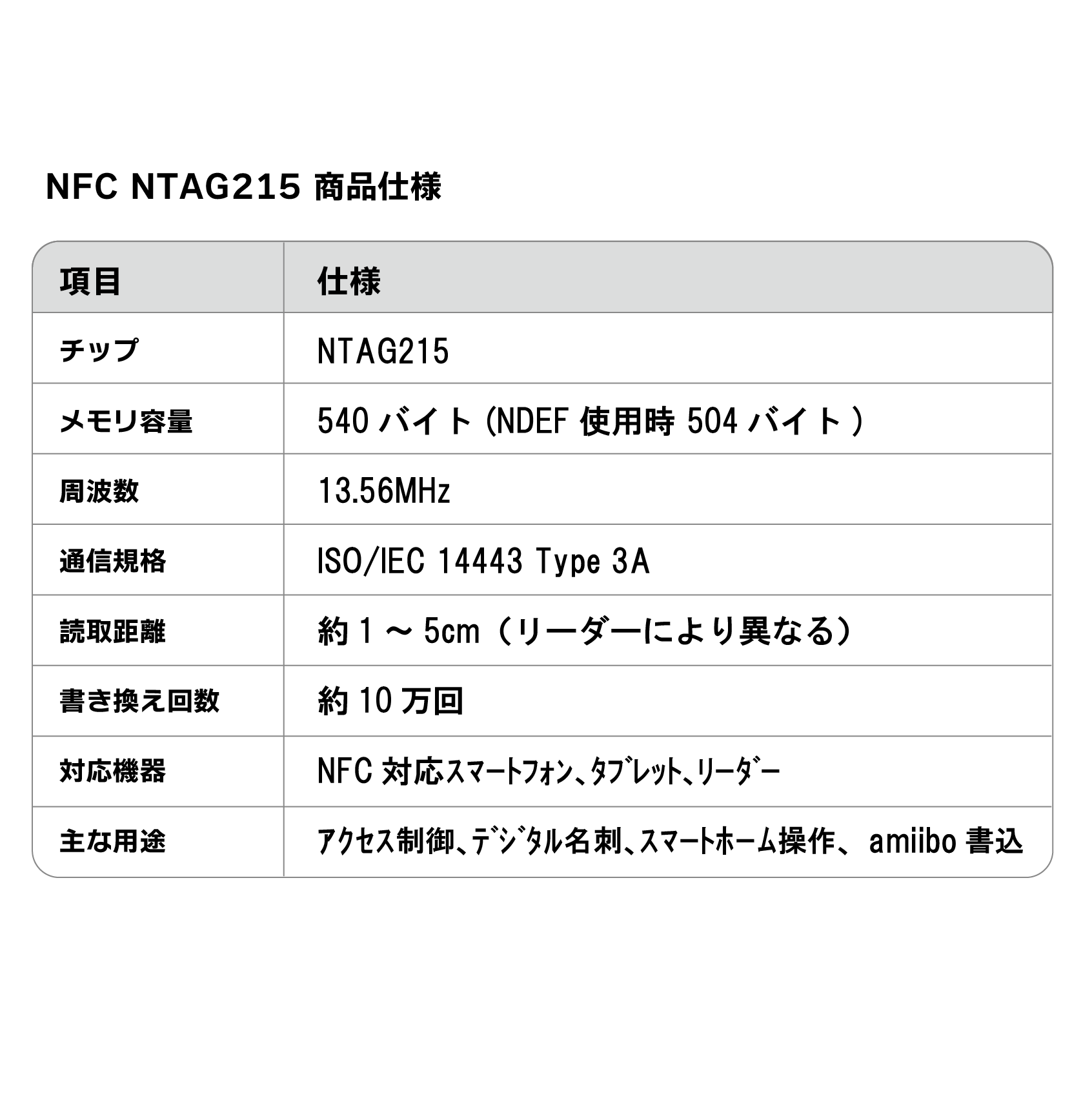 Read Range: Approx. 1–5 cm (depending on the device)